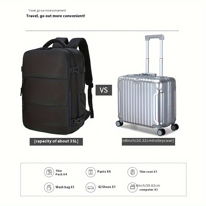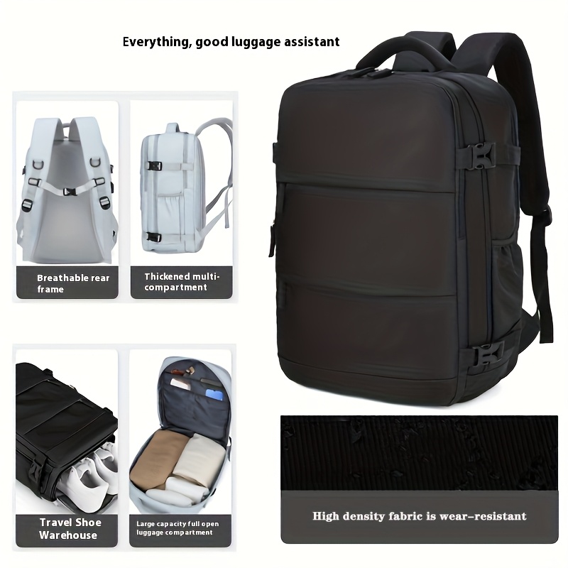1個 スポーツスタイル ポリエステル トラベルバックパック ラップトップコンパートメント、靴収納、USB充電ポート付き - 調節可能なストラップ、ジッパークロージャー、手洗い可能、航空会社承認ビジネスバッグ 男女兼用、旅行用バックパック