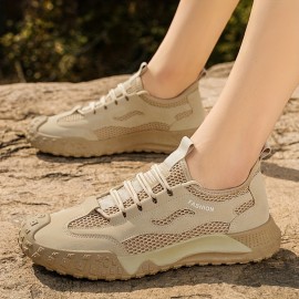 メンズ アウトドア カジュアル ハイキングシューズ - 春夏用 通気性メッシュ ロートップ スニーカー 耐久性ラバーソール付き、ベージュ トレッキングシューズ スポーツ&都市冒険用 夏の履物 | スポーティルック | 快適フィット