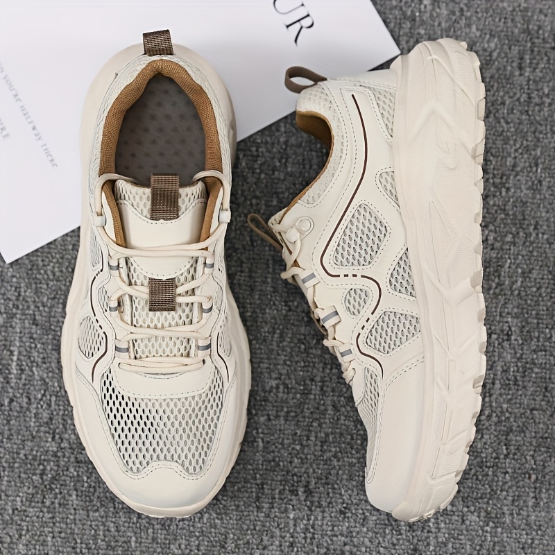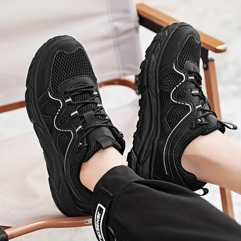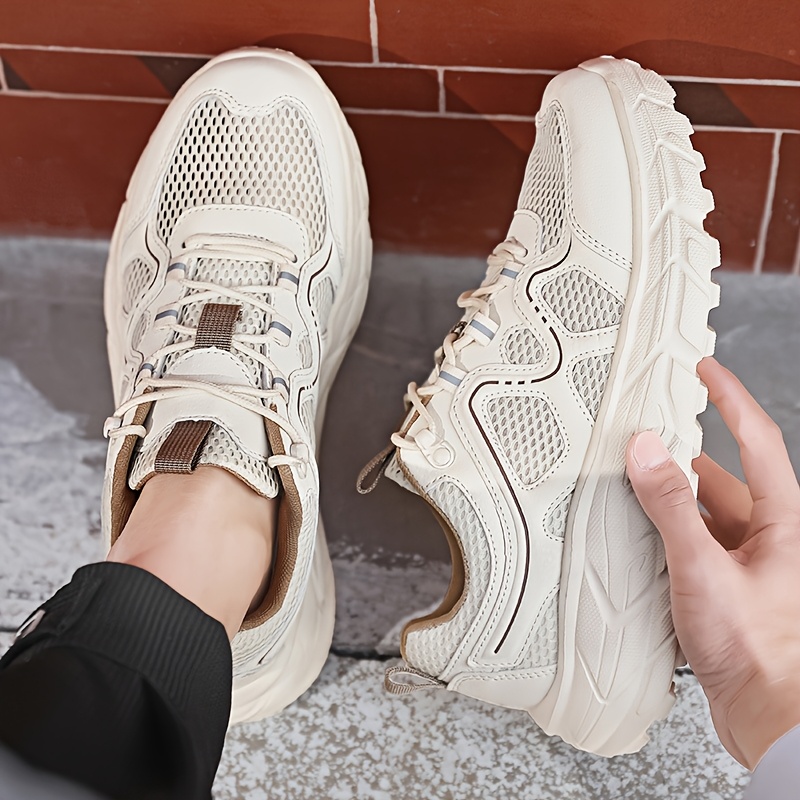メンズ通気性メッシュカジュアルスニーカー - 軽量EVAクッション付き、レースアップロートップデザインでハイキング・ランニング&日常着用に最適 春夏秋シューズ(EU 39-48)、アウトドアハイキングシューズ|スタイリッシュなツートンカラーデザイン|柔軟性のある履物、ハイキングアクセサリー