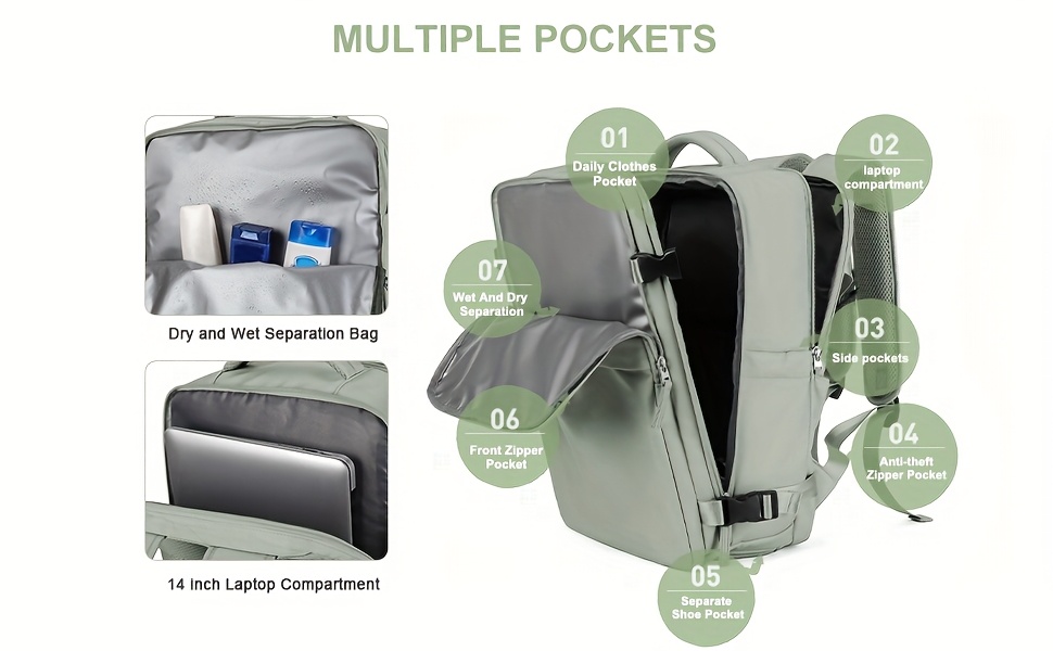 1個 スポーツスタイル ポリエステル トラベルバックパック ラップトップコンパートメント、靴収納、USB充電ポート付き - 調節可能なストラップ、ジッパークロージャー、手洗い可能、航空会社承認ビジネスバッグ 男女兼用、旅行用バックパック