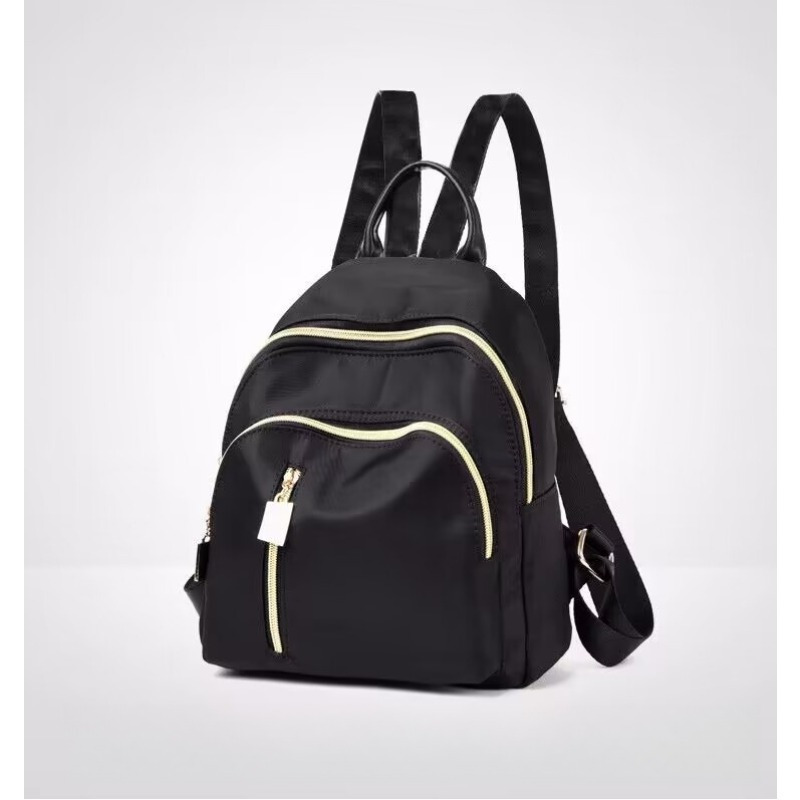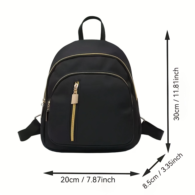 スタイリッシュなナイロン製レディースバックパック - ブラックにゴールドジッパー、複数のコンパートメント、調節可能なショルダーストラップ、日常使いに適した変換デザイン、旅行用バックパック
