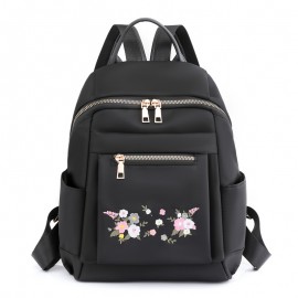 ヴィンテージフローラル刺繍バックパック、シンプルカジュアルナイロンデイパック、レディースファッショントラベルスクールバッグ